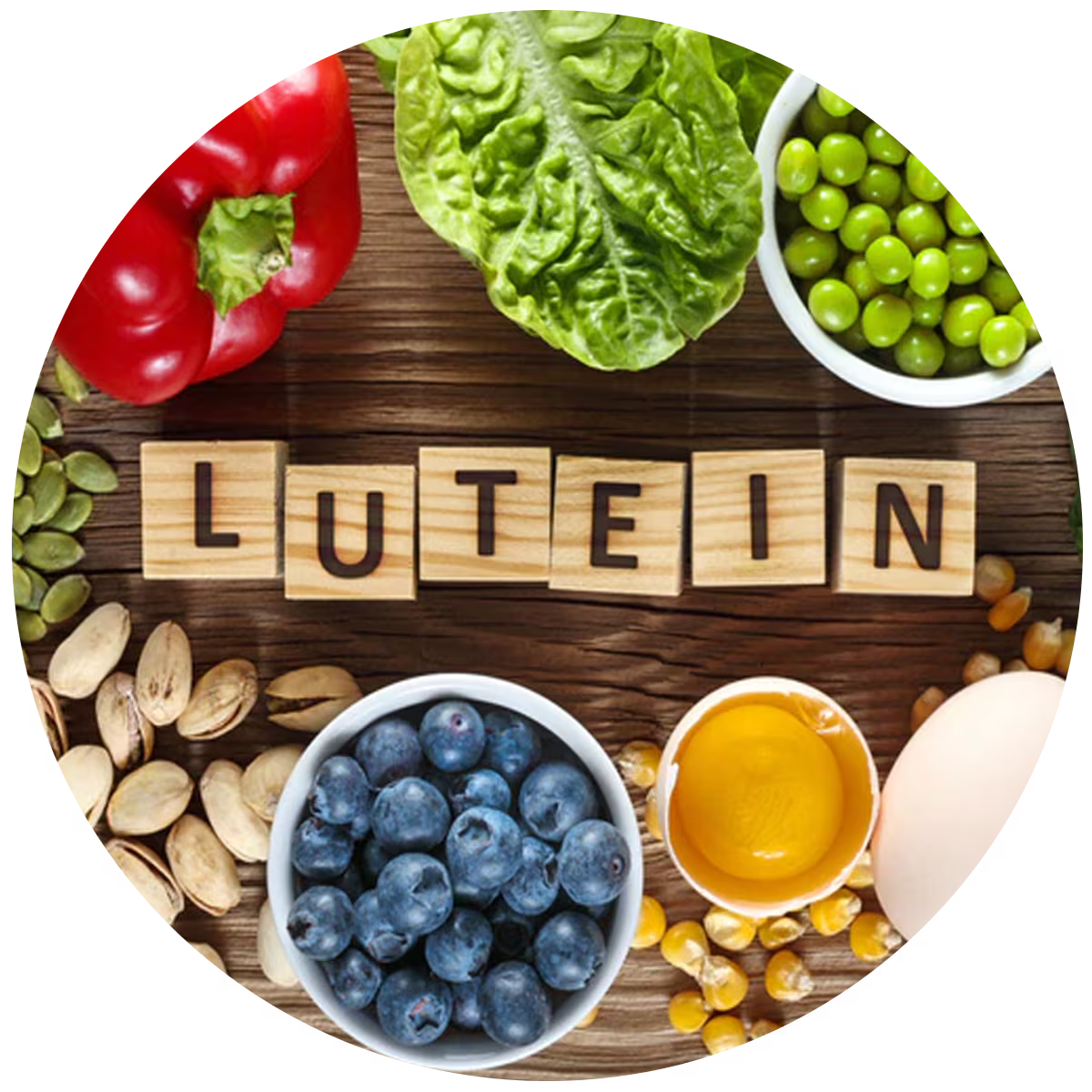 Lutein is one organic substance known as carotenoids found in the human eye (macula and retina). It is frequently referred to as the 'eye vitamin'. It is related to Beta-Carotene and Vitamin A